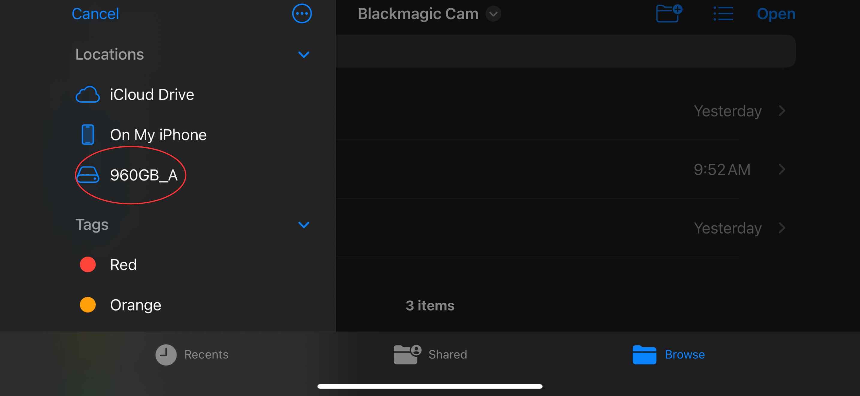6) Select the location that you wish to save to. In this example, the external storage name is “960GB_A”, the name will vary on your device.